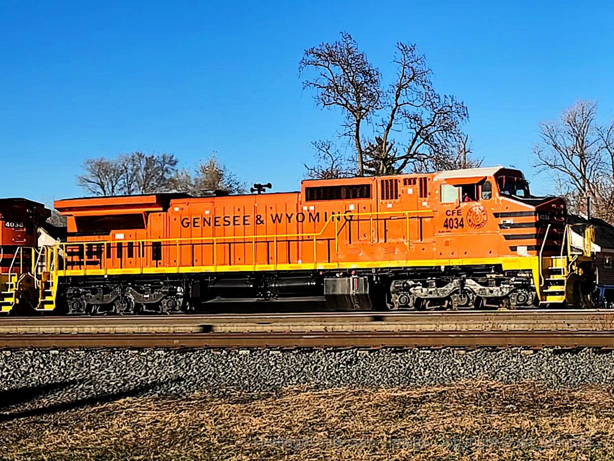 Fresh from Blue Island Yard, and lead by locomotives CFE4034 and CFE4038, Chicago, Fort Wayne & Eastern train CFE CHFW passes beneath the Indiana Harbor Belts control point (CP Columbia) in Hammond, Indiana.