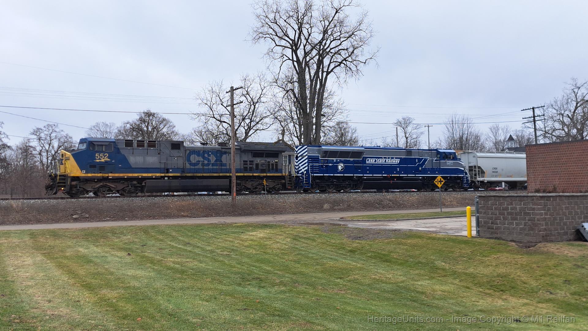 CSX 552 leads LSRC 127 north with one of Lake States new T4s second.