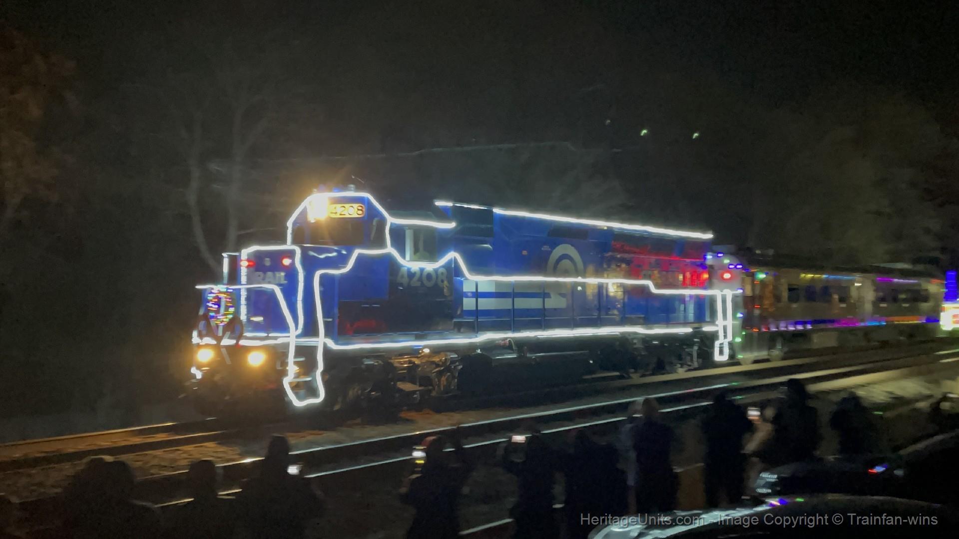 NJT 4208 leads the 2025 CSAO Santa Train through South Plainfield on a cold evening with a great horn show.