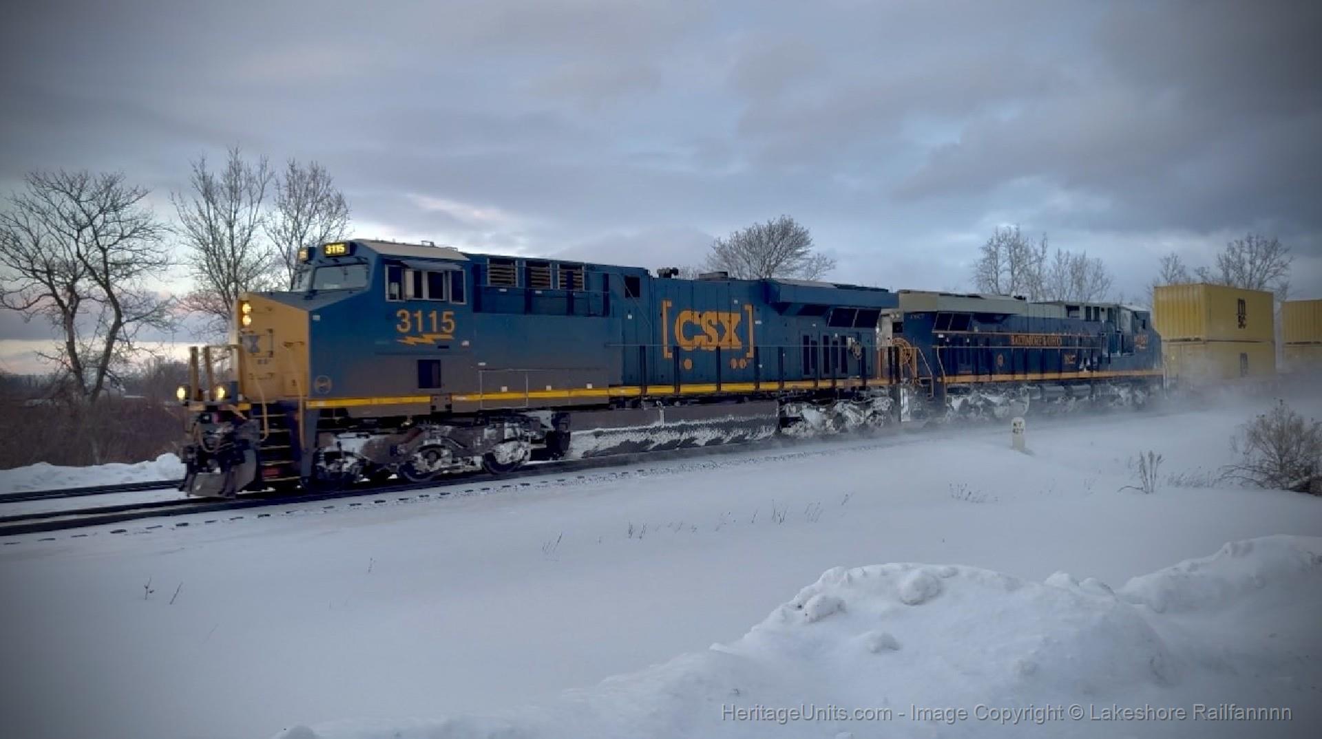Ripping westward through the snow, trailing on CSX I009