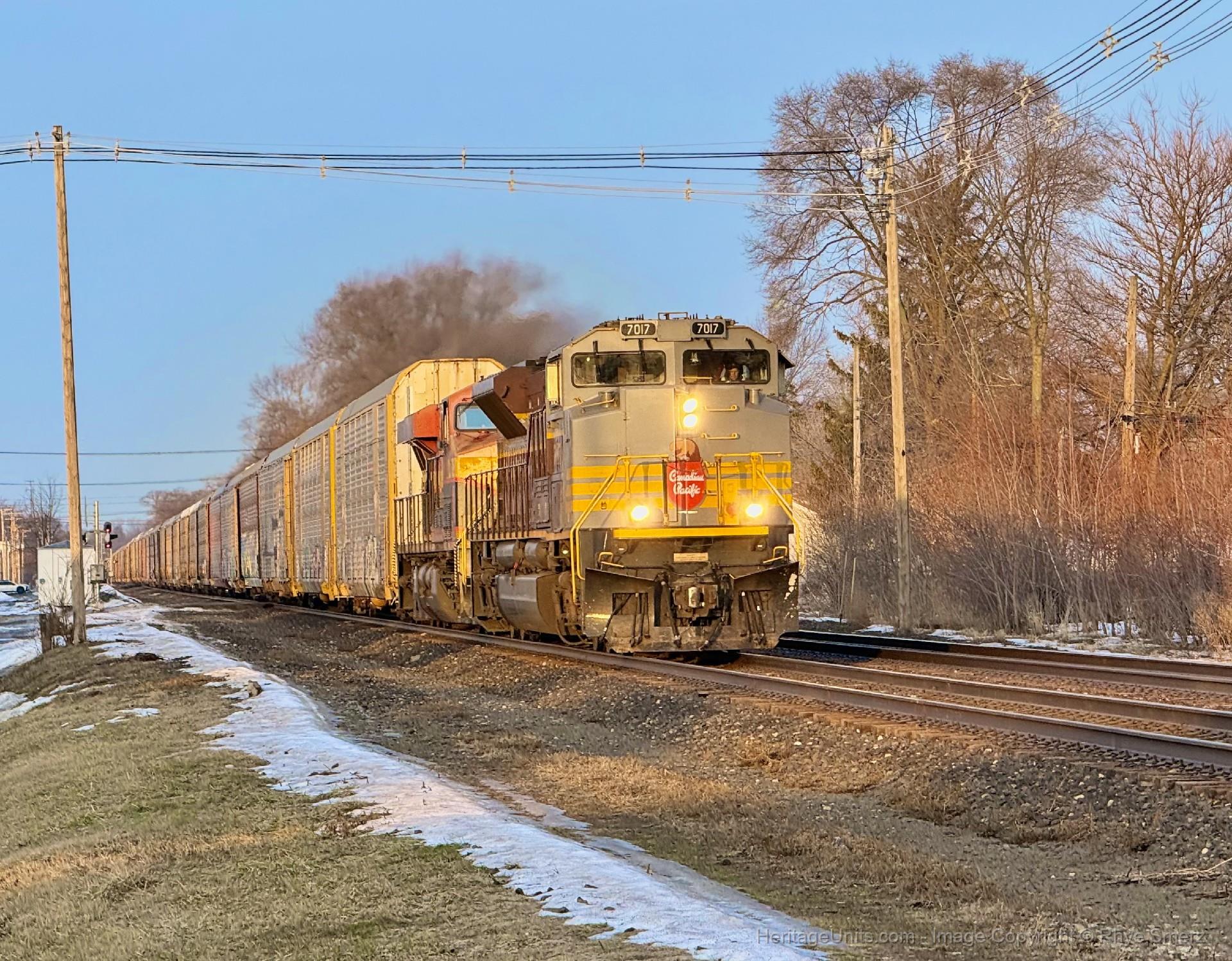 CP 734 hauling through Mishawaka on Valentines Day with 7017 in the lead! 02/14/2026