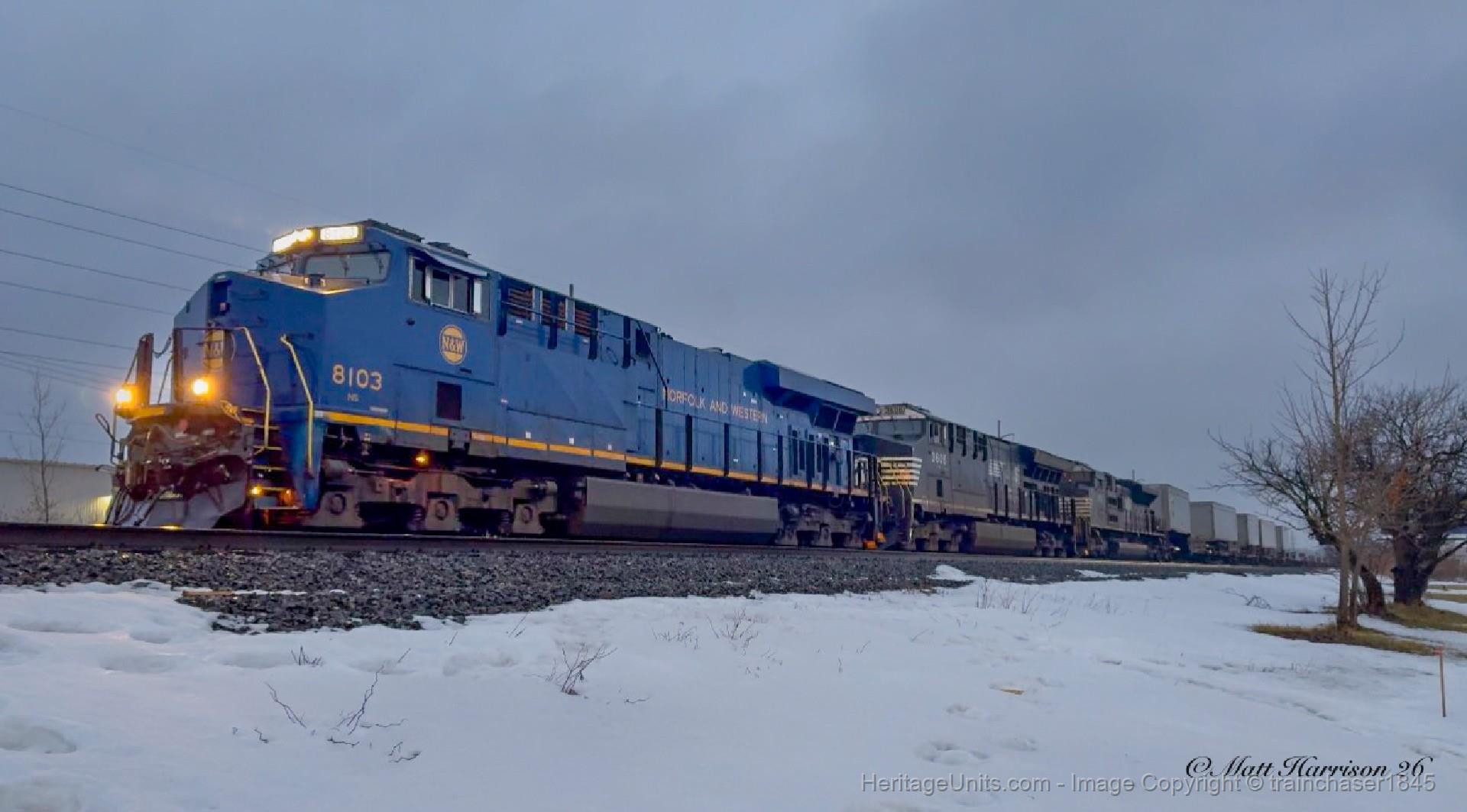 NS 28B arriving Buffalo, NY with NS 8103 N&W heritage unit leading