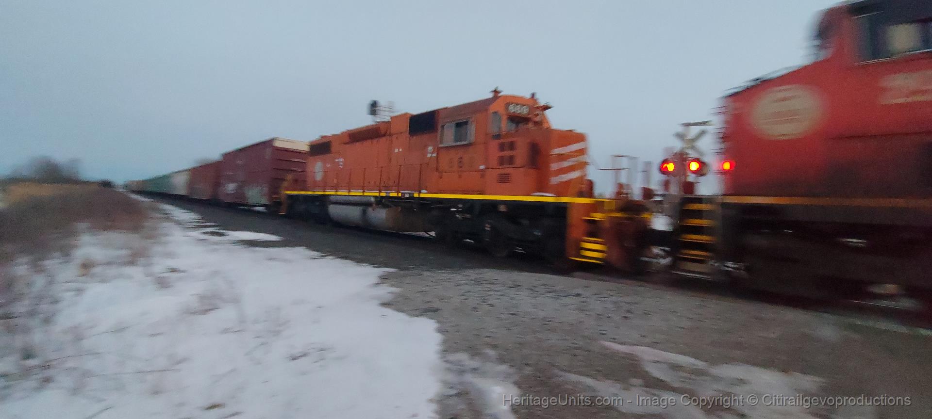 EJE 669 passing Watford West on Thu, Feb 26 2026 trailing M399 to Salem, IL.