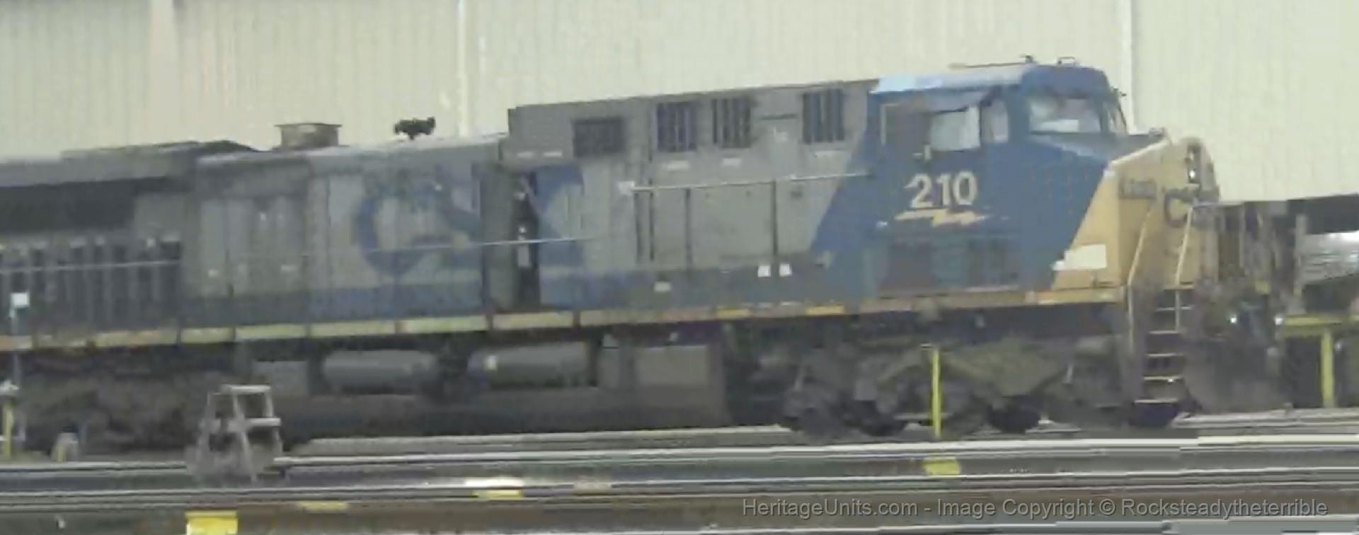 CSX 210 (low ditchlights) sitting in the rice yard shops after coming off a massive power move from L795 the previous day (photo is from a tour)