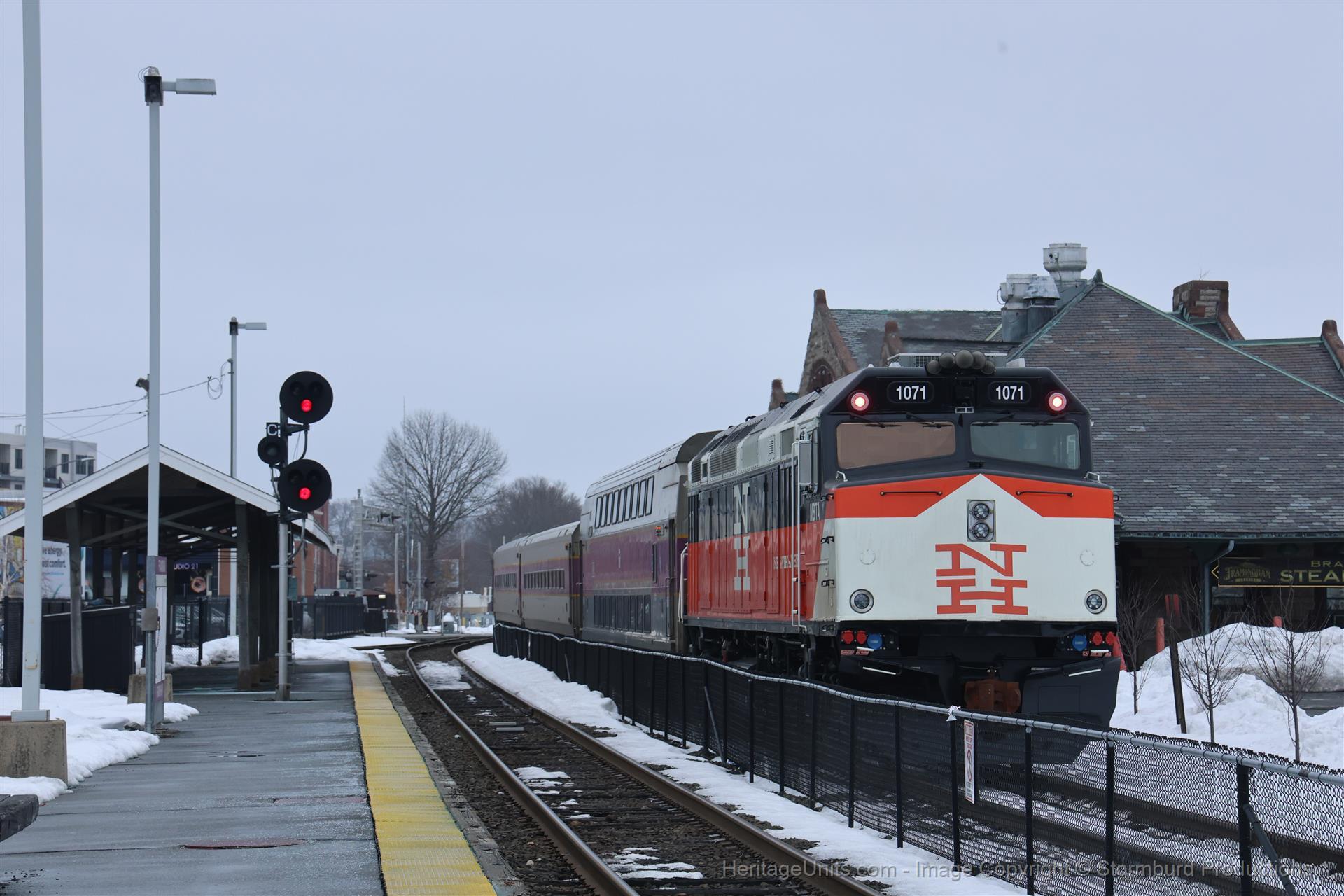 Heritage Unit Meet! P550 EB (MBTX 1851/1071) meets P545 WB (MBTX 1036/1859) at Framingham.