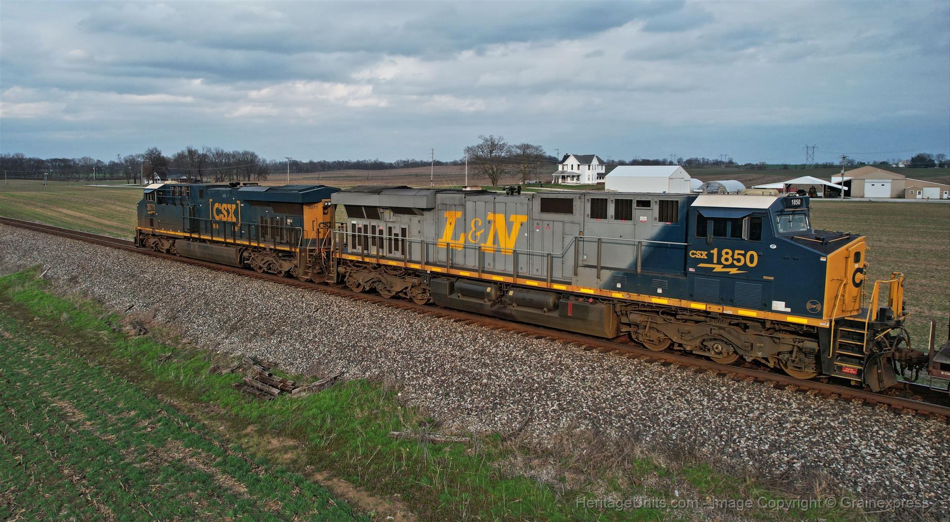 CSX 1850 is in trail on I128 just south of Vincennes, IN.3-10-26
